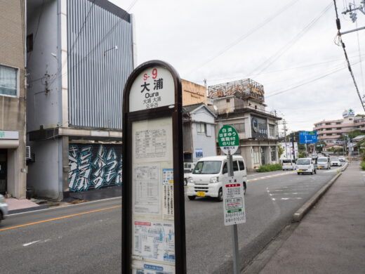 坂を降りた先の大浦バス停から明光バスに乗車。