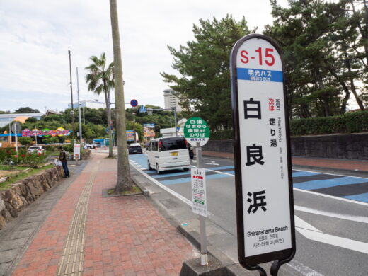 白浜の明光バスはけっこう運行本数が多く使えます。2日間フリーチケットを買って、これで観光します。