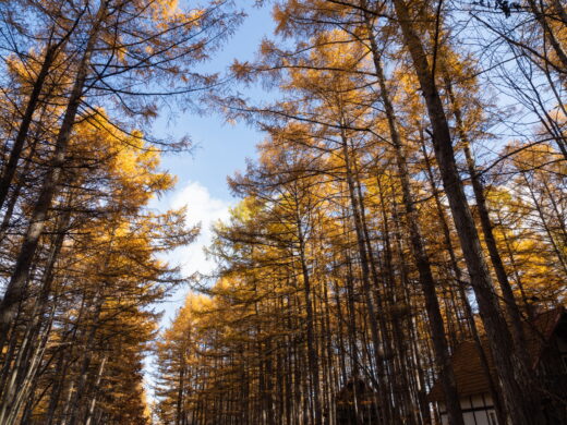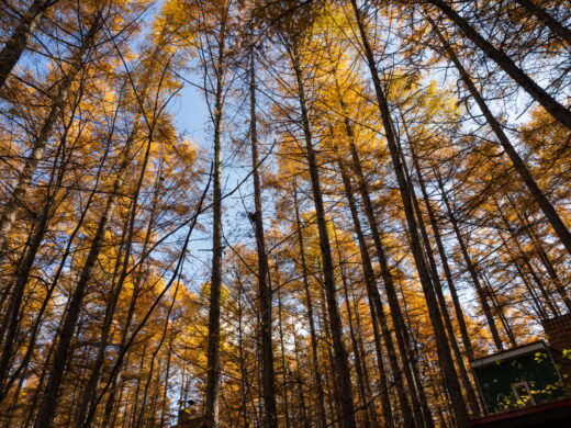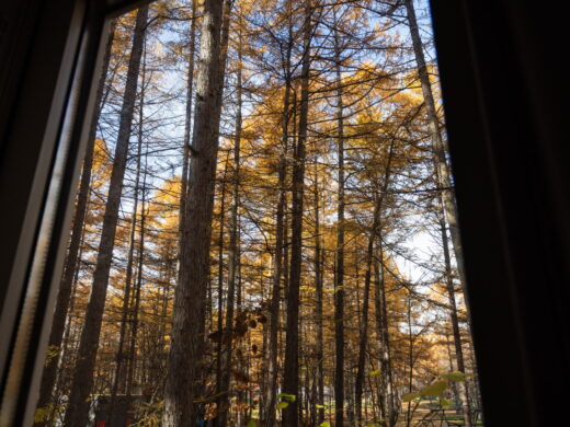 例年と比べ、今年はカラマツの紅葉が遅れています。