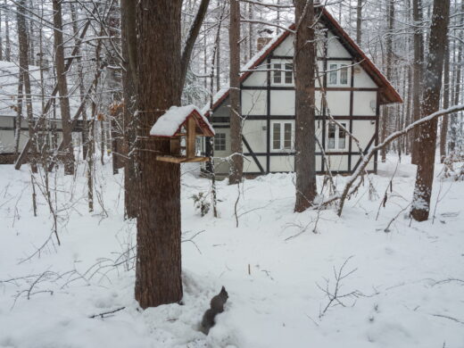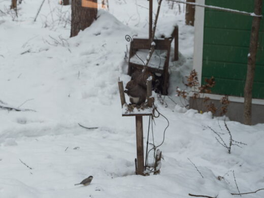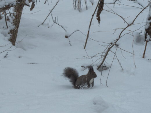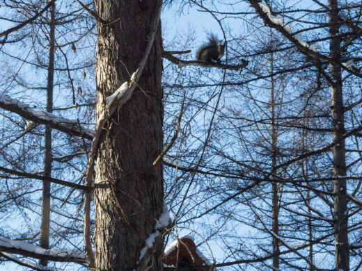 まわりの風景に馴染んだようで、エゾリス君に大人気です。