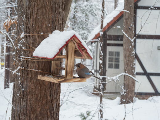 カケスやゴジュウカラなどのカラ類もやって来ます。