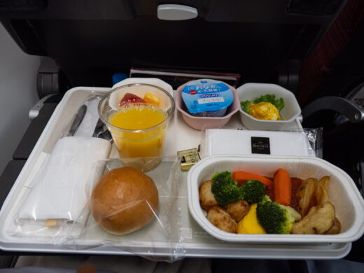 1時間半ほどのフライトですが、国際線なので機内食が出て来ます。