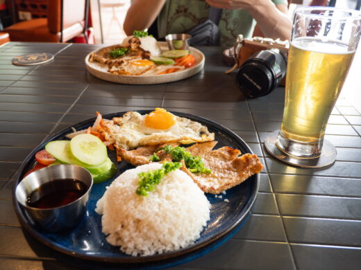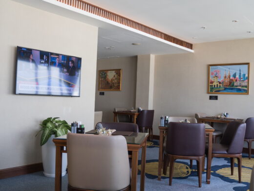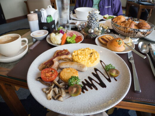 ソフィテルプラザホテルの最上階にあるラウンジでしっかりと食事とビールをいただきました。