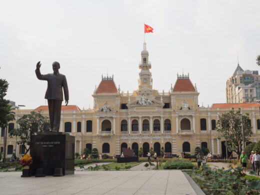 ホーチミン人民委員会庁舎とホーチミン像、ホーチミンに来たといった雰囲気。