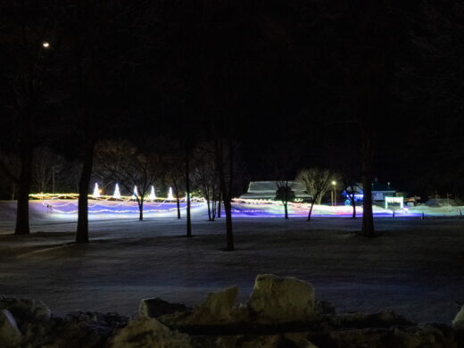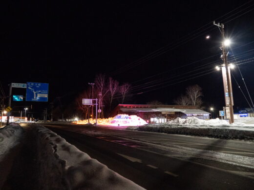 夜、道の駅なかさつないでイルミネーションが点灯しました。