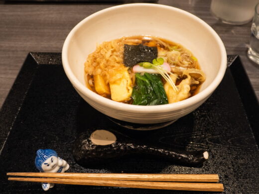 そしてカシワ、きのこの天ぷら、ホウレンソウなどが入った、ふたばそば。