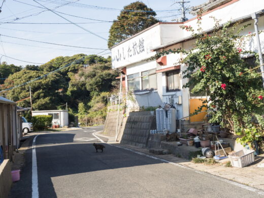 島の中心集落・本村。島内唯一の食堂さざんかがあります。