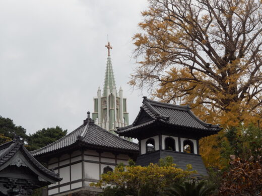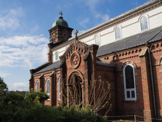 天草の崎津集落の鳥居の中の教会に通じるものがありますね。