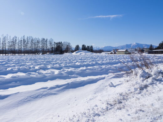 畑と防風林と中札内市街そして十勝幌尻岳の組み合わせが良いですね。