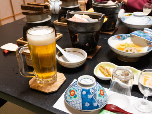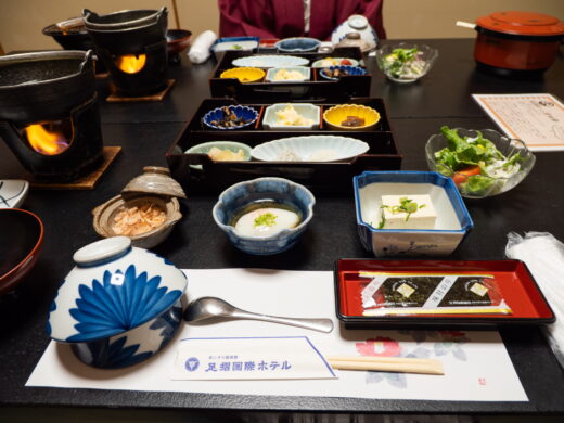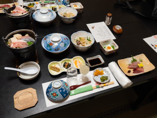露天風呂のある温泉に入ってから、夕食の会席です。