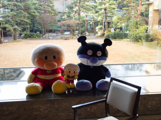 アンパンマンのぬいぐるみ。庭園も素敵です。