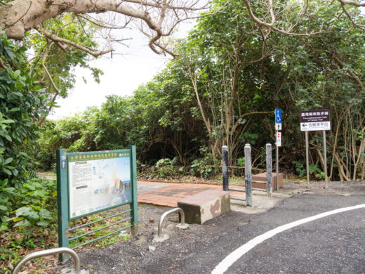 バスの終点から歩くこと約30分、こちらの遊歩道を通って海岸へ。
