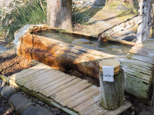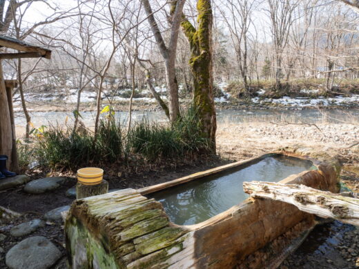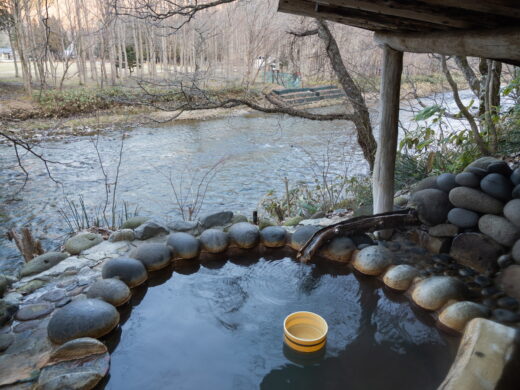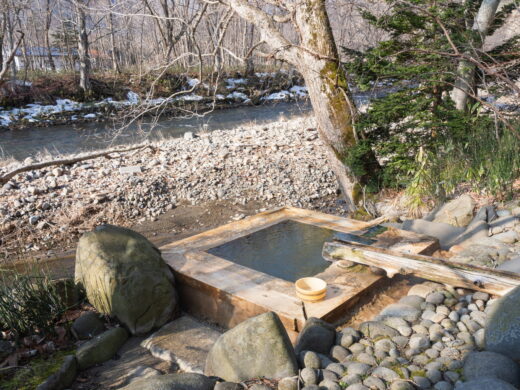 川沿いの風情ある野天風呂です。1時間単位で貸切となります。
